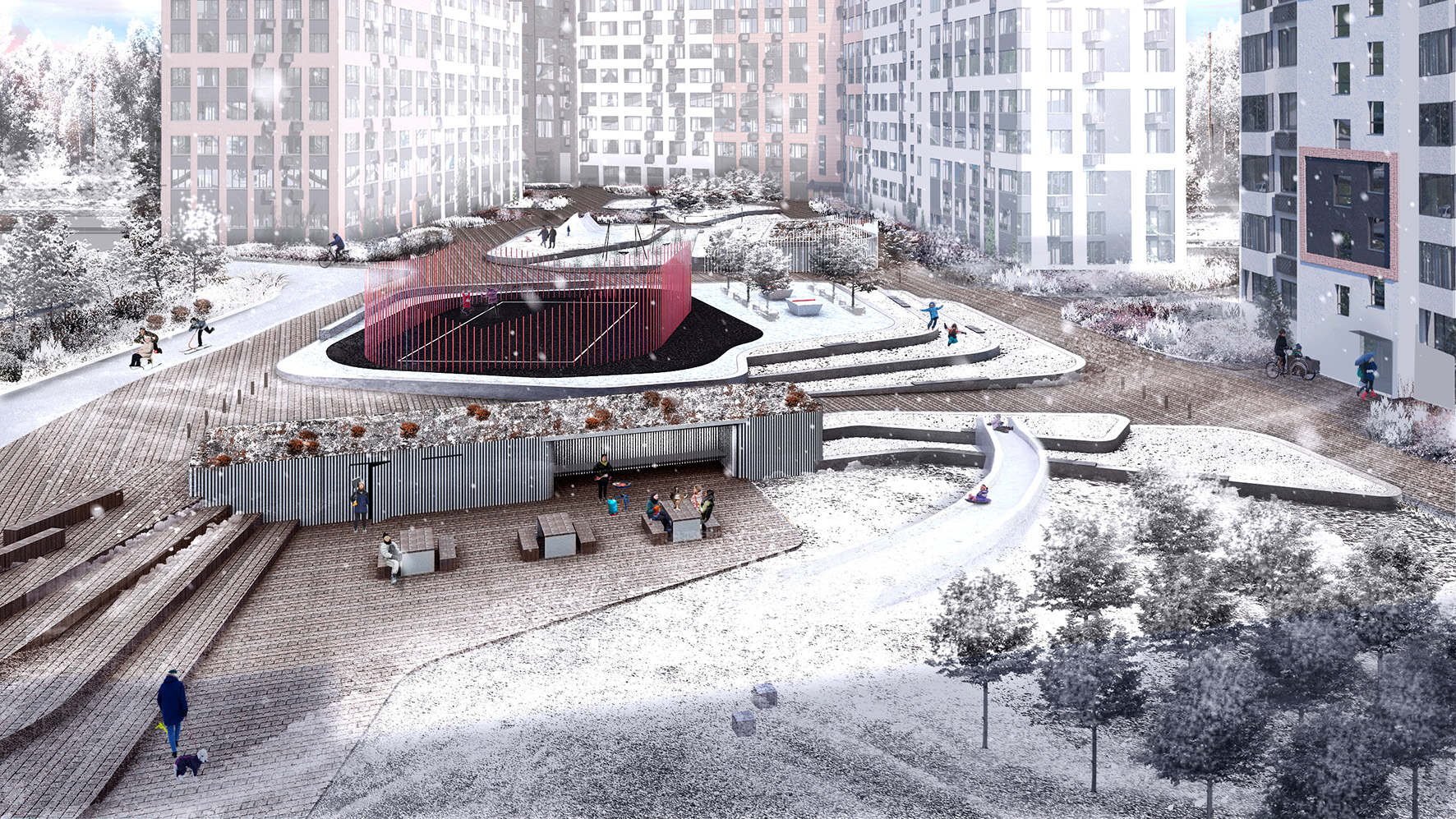 Концепция дизайна дворовых пространств жилого района Скандинавия А101 в Москве