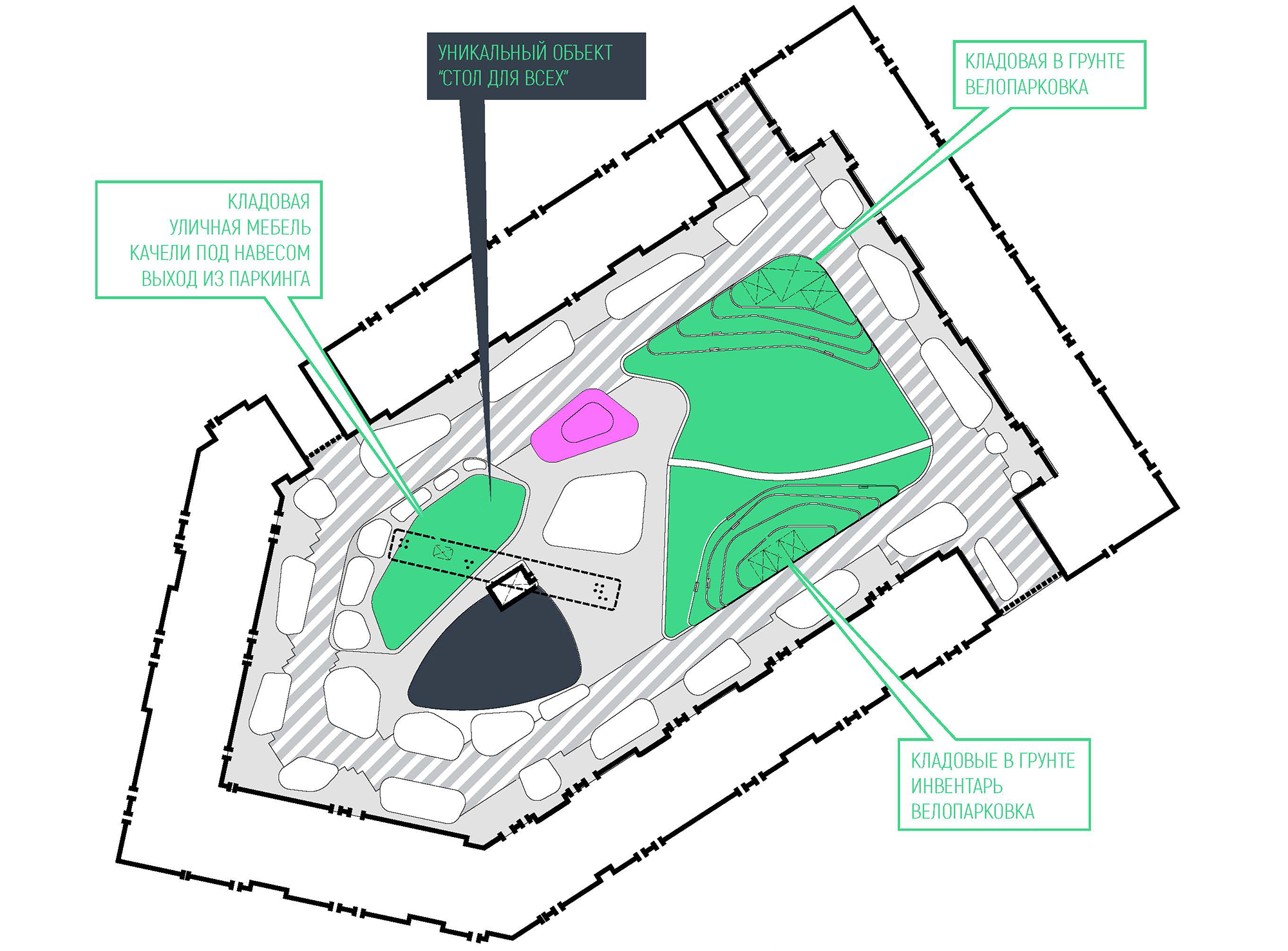 Концептуальные основания проектирования дворовых пространств полностью соответствуют и являются реализацией в локальном контексте положений Концепции открытых городских пространств проекта жилого района Скандинавия А101